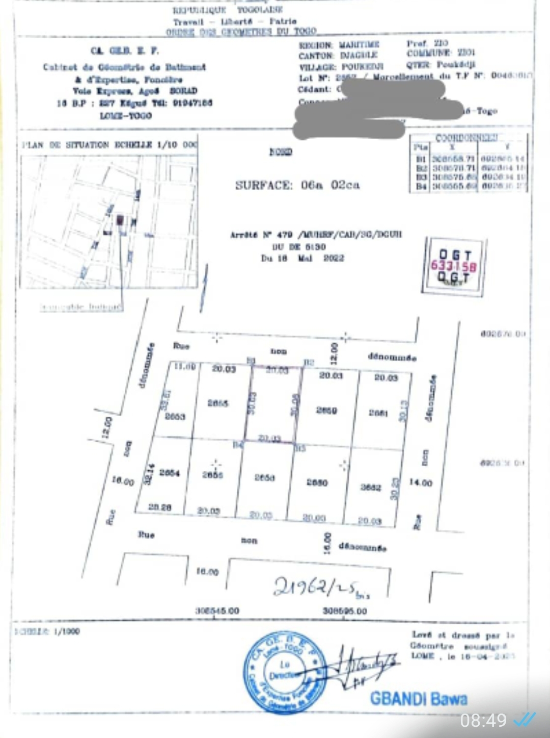 📍 Gbamakopé (près du bar Agbéviadeko et de l’église catholique) 📏 1 lot clôturé – à 4 km du goudron 📑 Papier : 1 tampon OTR 💰 Prix : 14 millions FCFA à débattre